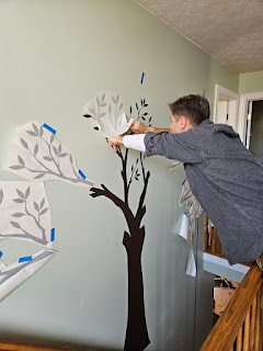 Next we stuck the branches on and removed the backing. It really helps to have tall people around.